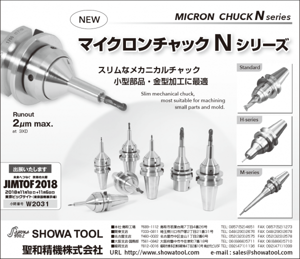 TOP ニュース・展示会情報 2018/10/25 (株)日刊工業新聞社 日刊工業新聞に掲載されます(10月31日発行) (株)日刊工業新聞社 「日刊工業新聞 2018年10月31日JIMTOF特集」(10月31日発行) 新製品:マイクロンチャックNシリーズ・BORING SYSTEM広告掲載 2018/09/20 (株)ニュースダイジェスト社 機関誌に広告掲載されます(11月1日発行) (株)ニュースダイジェスト社 機関誌 「月刊生産財マーケッティングJIMTOF2018ガイドブック」(11月1日発行) 新製品:マイクロンチャックNシリーズ・BORING SYSTEM広告掲載 2018/09/18 日本物流新聞に掲載されます(10月1日発行) (株)日本物流新聞社 「日本物流新聞2018年10月25日号JIMTOF特集」(10月1日発行) 新製品:マイクロンチャックNシリーズ広告掲載 JIMTOF2018見どころ掲載 前へ 次へ
